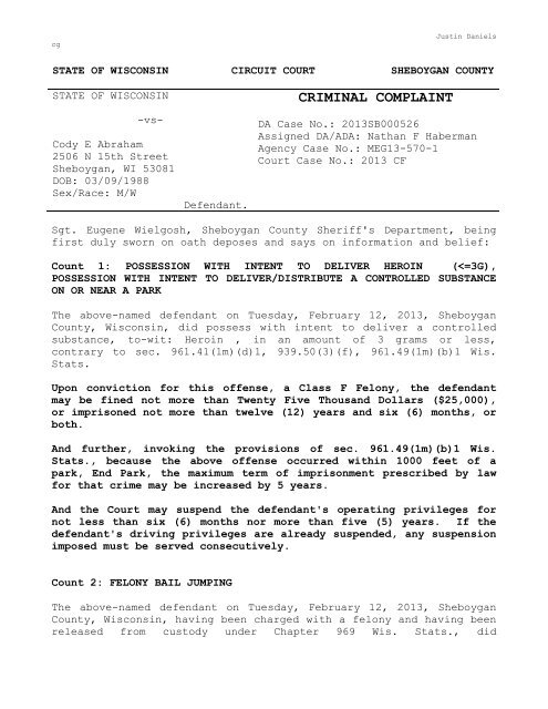 A Class H felony is the second-most mitigated felony offense in Wisconsin. Youre probably worried about going to trial and confronting many unknowns. In March 2014 a Dane County jury found the Caminitis guilty of multiple counts of child abuse a Class H felony the same charge police recommended bringing against Sortwell.