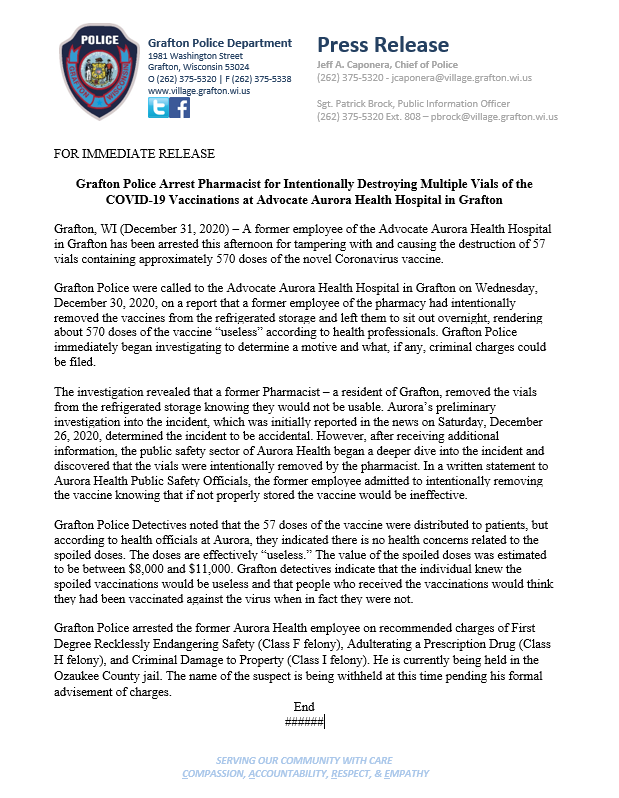 Village Of Grafton Police Department Graftonpolicewi Twitter